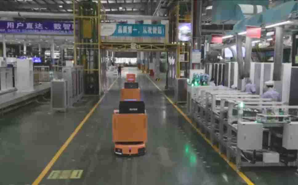 为车载冰箱物流配送打造的智能解决方案,,,,包含产中物流通过潜伏举升AMR搬运至线边,,,产后成品物流智能仓储,,,,流程包含产中物流智能齐套入库,,线边安灯叫料AMR智能配送至线边,,成品入库、、、出库,,,,通过无人堆高车机器人,,,,智能仓储管理替代人工作业管理,,,,实现更高存储、、、更高效率、、更具柔性化的解决方案。。。